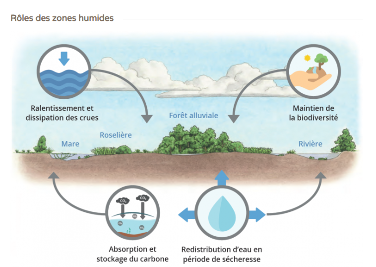 Les zones humides assurent des fonctions essentielles dans les équilibres naturels et pour de multiples activités humaines :